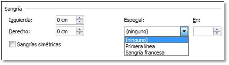opción de sangría en la primera línea. Como puedes observar, la primera línea